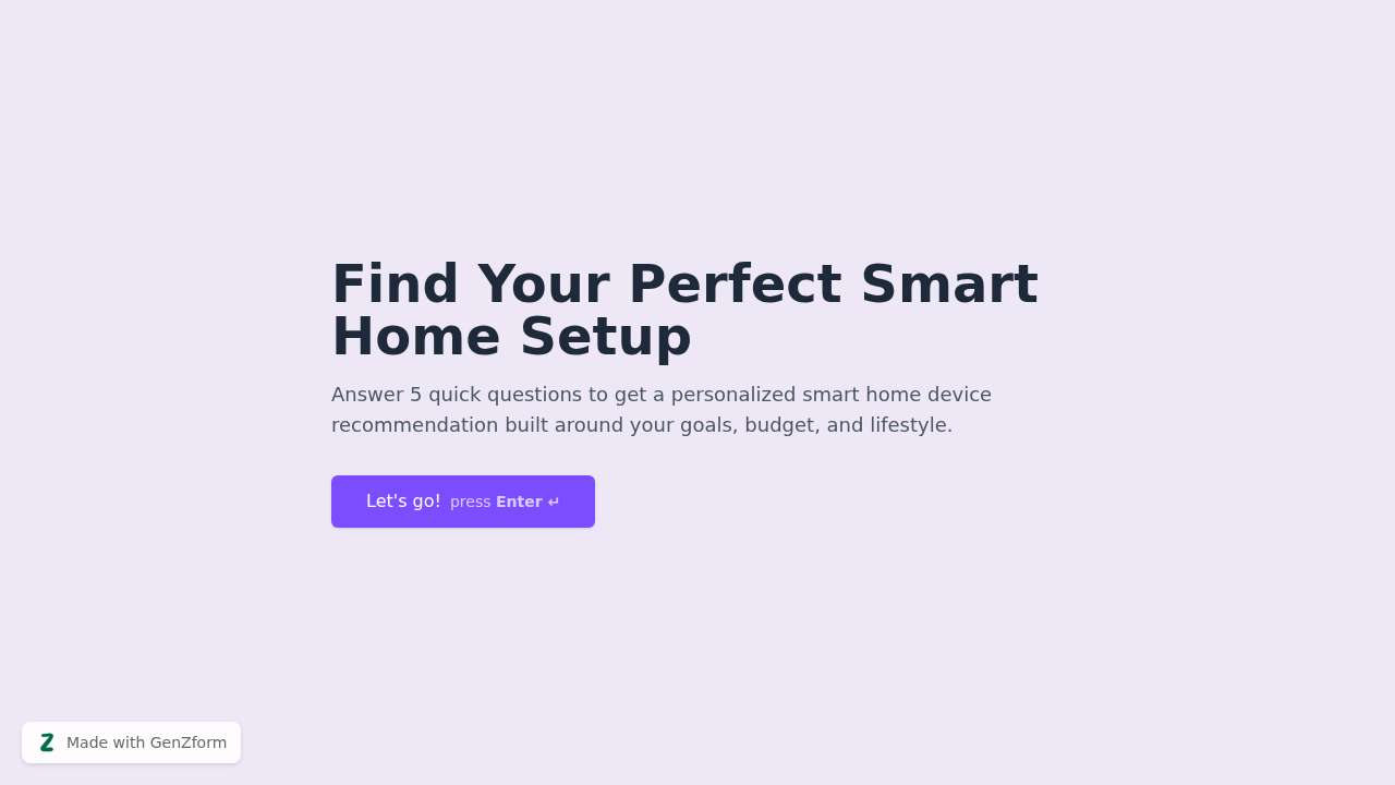 A 5-question recommendation quiz that guides homeowners to the right smart home devices in under 2 minutes. Covers security systems, energy management, entertainment setups, and whole-home ecosystems. Each respondent gets a personalized device recommendation with specific product suggestions, a setup order guide, and budget-matched picks. Ideal for smart home retailers, tech bloggers, and home improvement sites looking to convert visitors into qualified buyers. Includes branching logic across 5 device categories and budget tiers. Completion time: approximately 2 minutes.